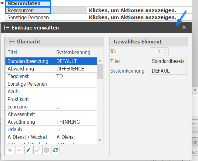 Stammdaten Einträge verwalten – Ressourcen & Besatzung