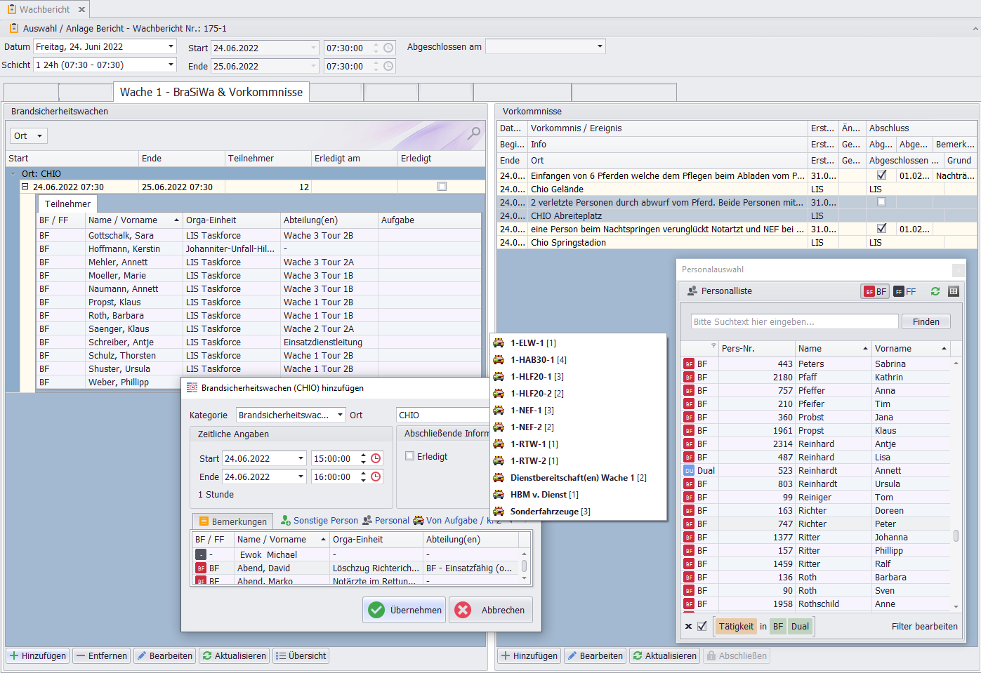 Aufgaben (im Gegensatz zu festen Funktionen oder Qualifikationen) können dem Personal der Brandsicherheitswache manuell zugewiesen werden, um die spezifische Rolle vor Ort festzulegen.