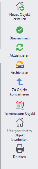 Archivieren→ Archiviert das Übergeordnetes Objekt mit seinen Nutzungseinheiten
