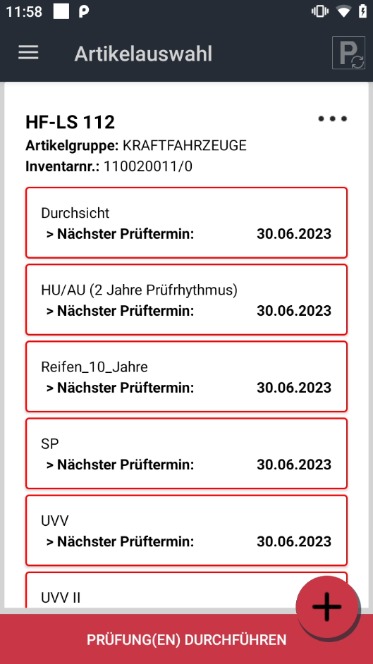 Um die noch offenen Prüfungen abzuschließen, führt man diese für den jeweiligen Artikel als Einzelprüfung aus oder Sie nutzen den Button PRÜFUNG(EN) DURCHFÜHREN