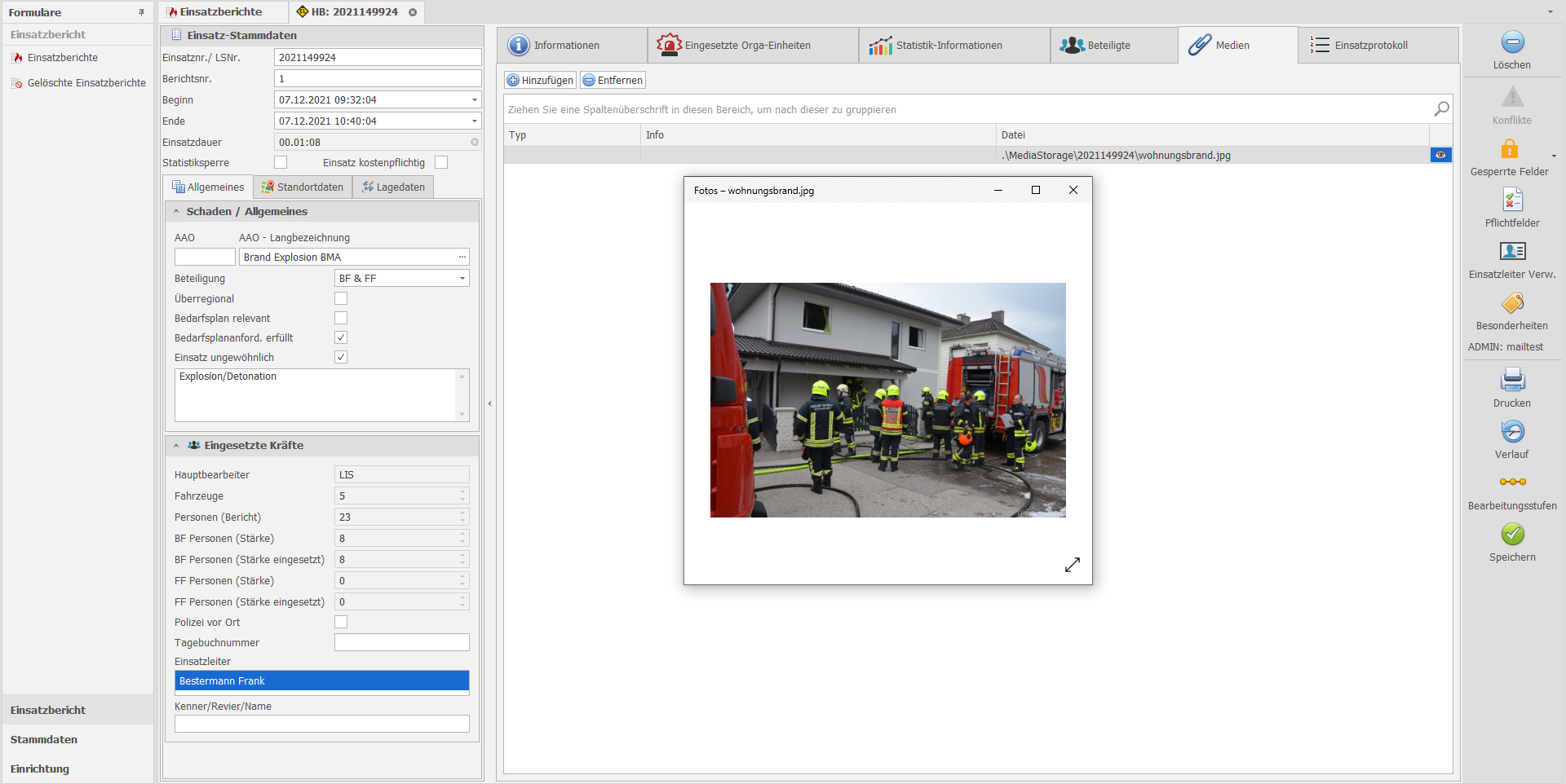 In diesem Formular haben Sie die Möglichkeit, verschiedenste Medien wie Schriftwechsel, Fotos, Zeitungsartikel und mehr im Zusammenhang mit einem Einsatz zu hinterlegen und abzurufen. Die Medien können jederzeit entfernt oder neu hinzugefügt werden.