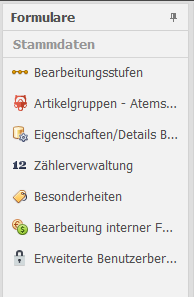 Für die nachfolgend aufgelisteten Formulare benötigen Sie Rechte, um diese weiter zu bearbeiten. Die Vergabe der Rechte erfolgt wie üblich im Systemprogramm.