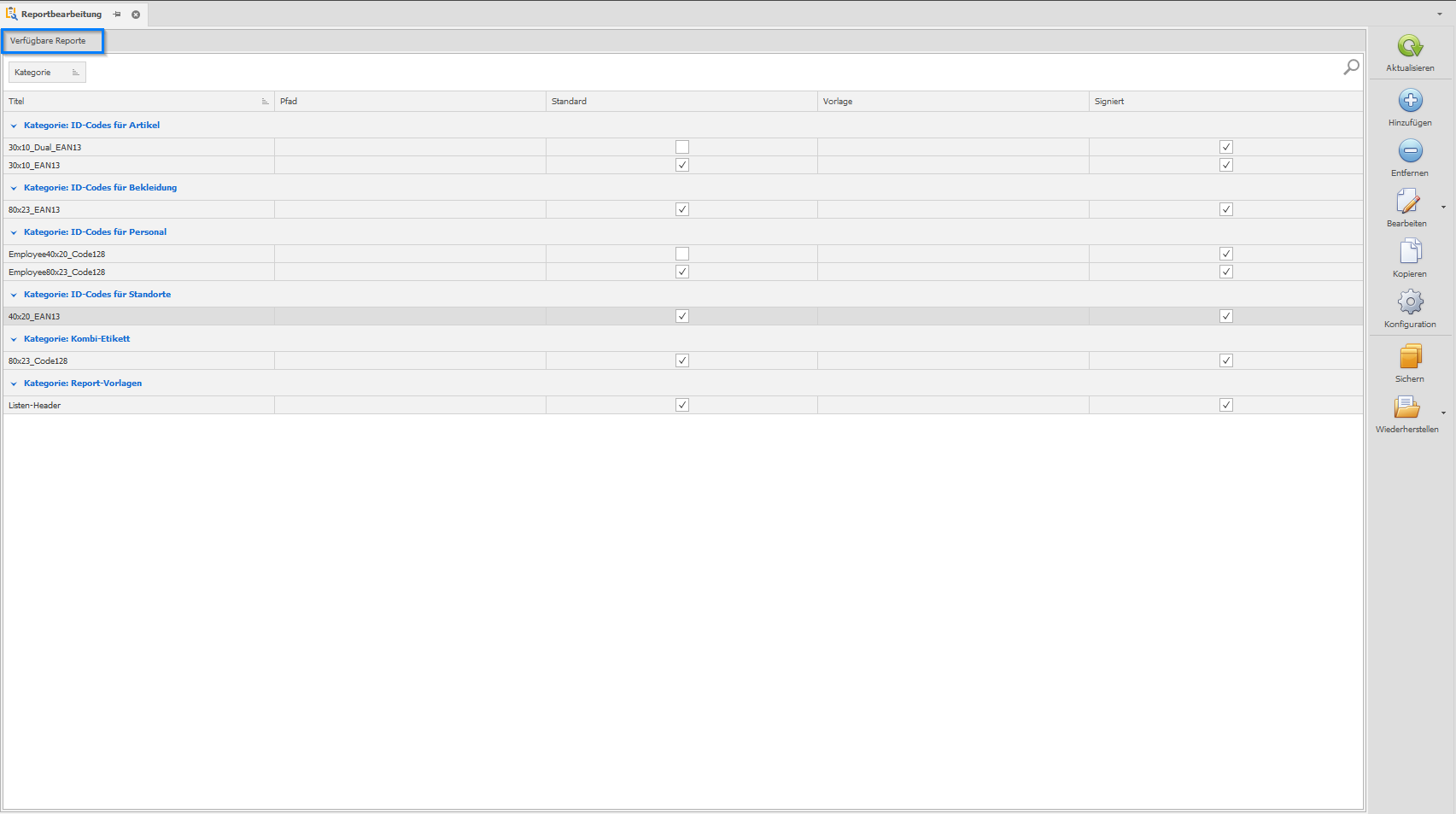 Verfügbare Reporte